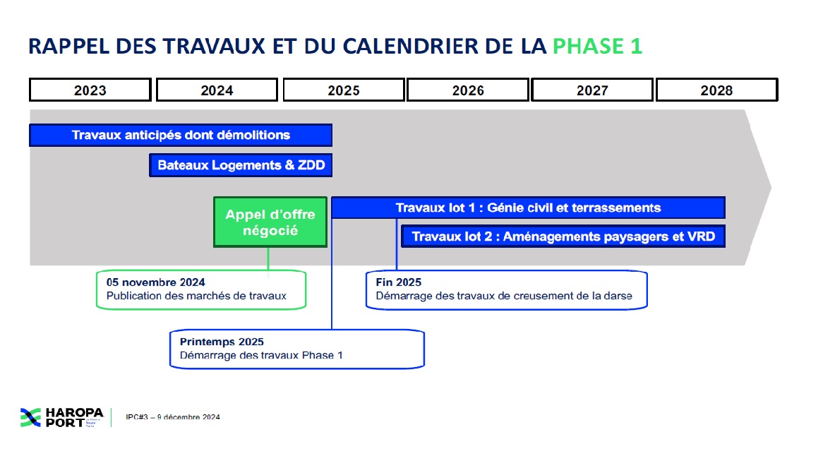 L’appel d’offres pour l’entreprise qui creusera la darse durant la phase 1 : la signature du contrat est au printemps 2025. Deux questions se posent :
