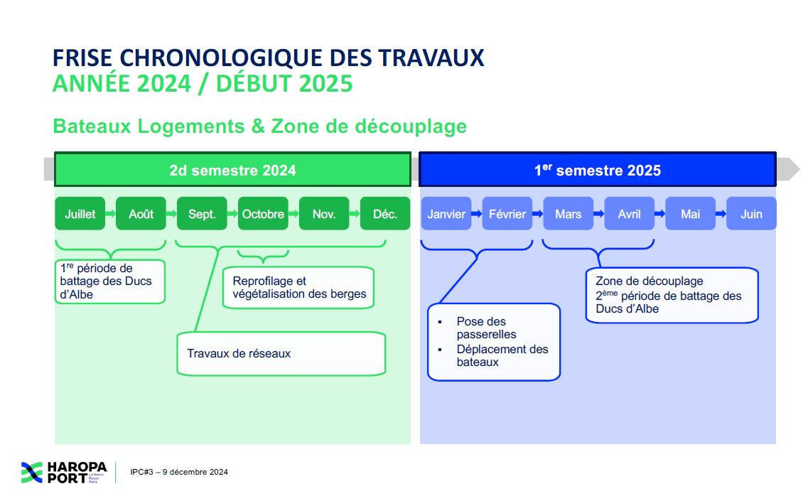 Cette réunion faisait le point sur les travaux préliminaire à la réalisation du port durant l’année 2024 et présentait les travaux qui auront lieu en 2025.