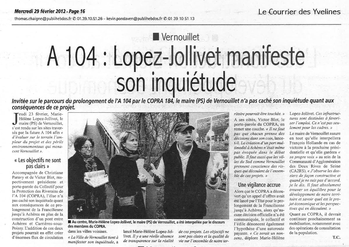 - A 104 : Marie-Hélène LOPEZ-JOLLIVET, Maire de Vernouillet manifeste son inquiétude.