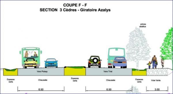 - Un transport de bus en site propre, tout le long du trajet, entre Poissy et Triel, permettrait de résoudre les problèmes actuels de congestion tout en raisonnant d’une manière avant-gardiste et non pas en utilisant les schémas « tout routier » du passé.