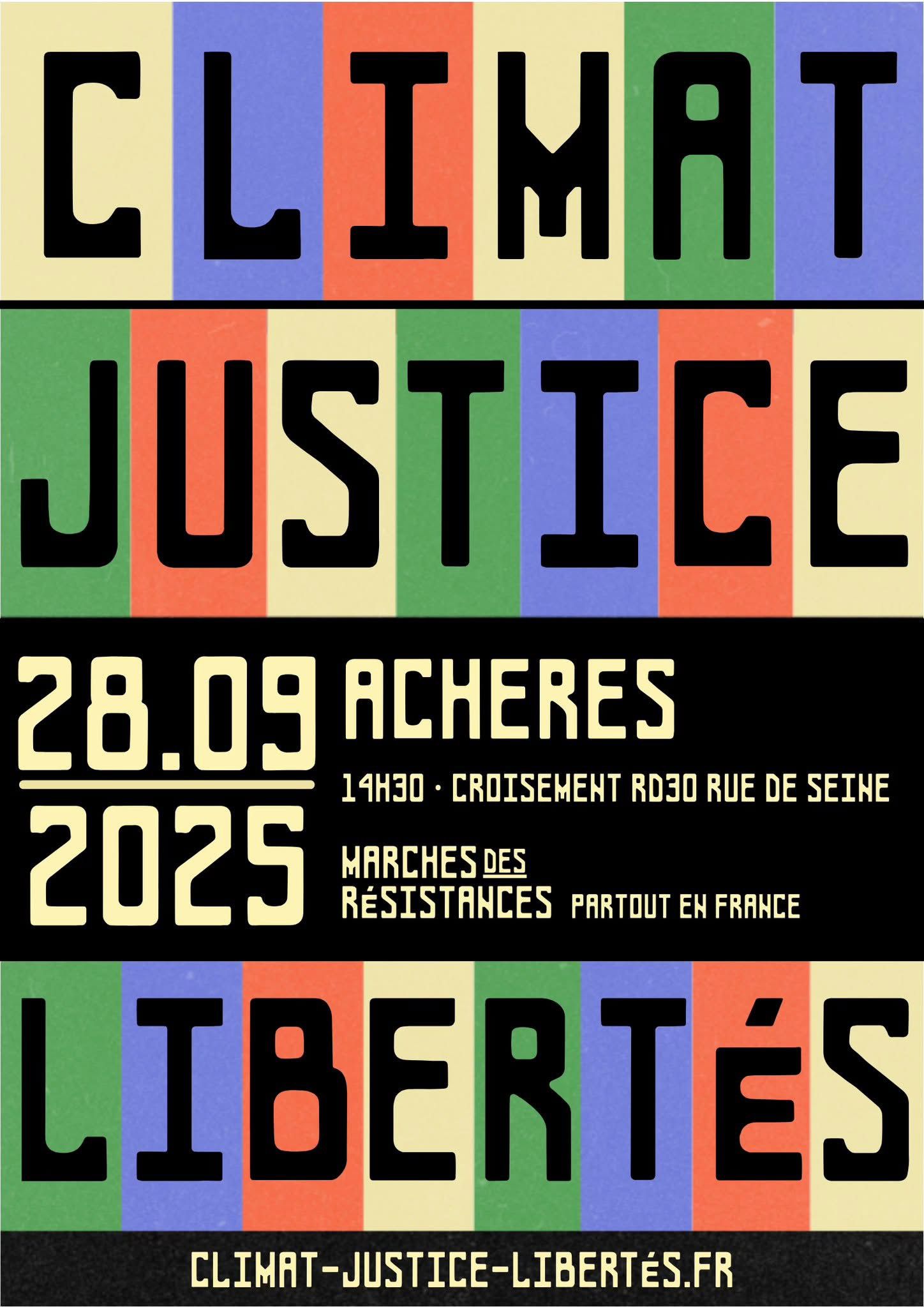 Nos associations ont décidé d'organiser une marche Climat, Justice et Libertés dans le cadre de celles qui sont organisées au niveau national par Green Peace, pour dire une fois de plus NON à la liaison 2x2 voies RD30/RD190 : Pont d'Achères.