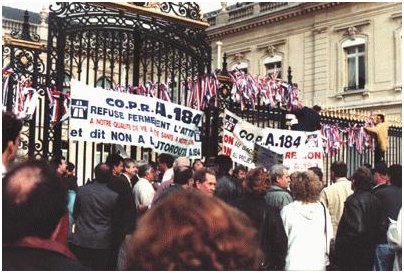 La ténacité et le mépris de Bernard PONS font descendre à nouveau les milliers d'adhérents et sympathisants du COPRA184 dans la rue. Ainsi en Octobre 1996 une imposante manifestation accompagne 250 élus locaux et nationaux de toutes tendances politiques, venus accrocher leur écharpe tricolore en signe de protestation sur les grilles de la Préfecture à Versailles.