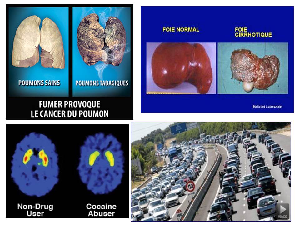 Certains d’entre vous se demandent peut-être quel est le rapport entre ces 4 images. En dehors des risques avérés pour la santé, ces 4 images illustrent une seule et même attitude : l’addiction ! En France, les pouvoirs publics, de nombreux industriels et une écrasante majorité de la représentation nationale sont complètement dépendants, au sens psychotique du terme, à la construction routière et autoroutière. Et ceci depuis plus de 60 ans maintenant ! Et ils sont dans l’incapacité de sortir de ce cercle vicieux. Exactement comme l’est une personne souffrant d’addiction à une drogue quelle qu’elle soit. Leur conditionnement est strictement le même. Ils sont Accros !